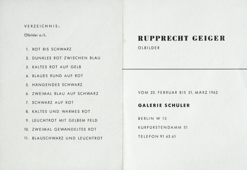 Einladung zu der Ausstellung Galerie Schüler Berlin 1962 Originalentwurfschwarz / weiß Offset 14,5 cm x 10,5 cm bzw 14,5 cm x 21 cm war gefaltet, guter Zustand (siehe zusätzliches Foto)