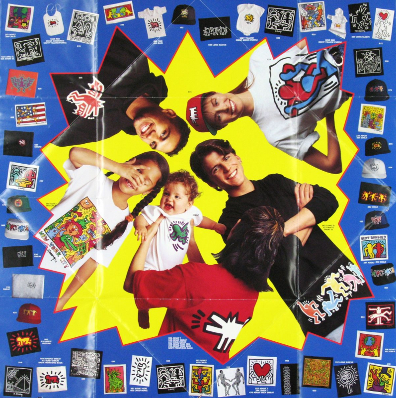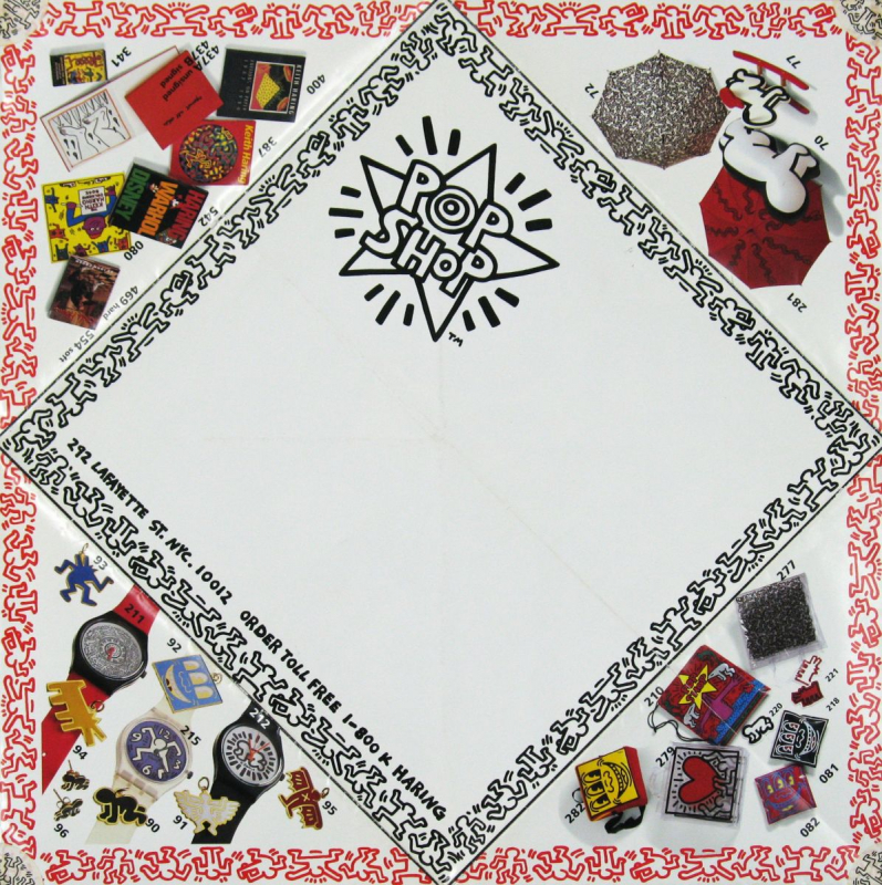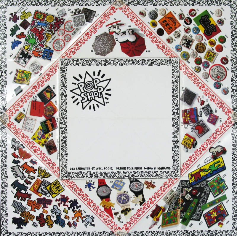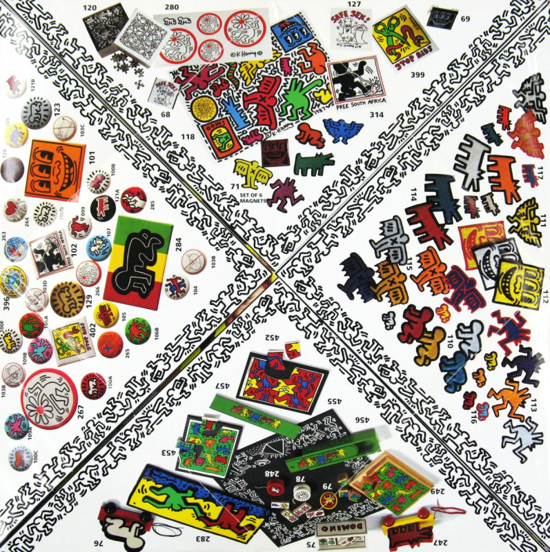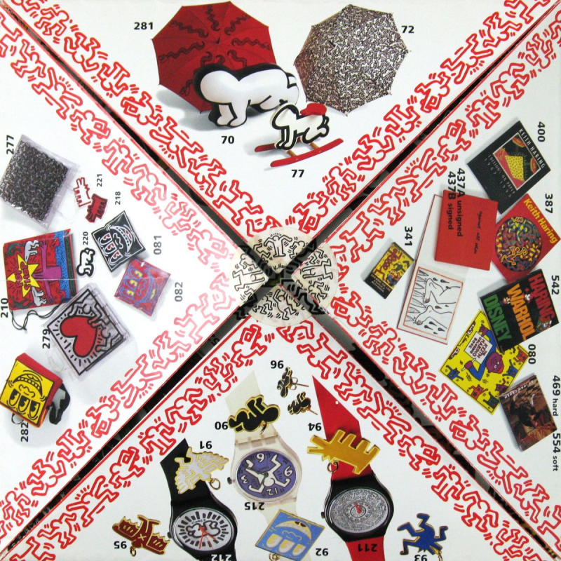 eine Auswahl der angebotenen Objekte in Harings Pop Shop zeigend