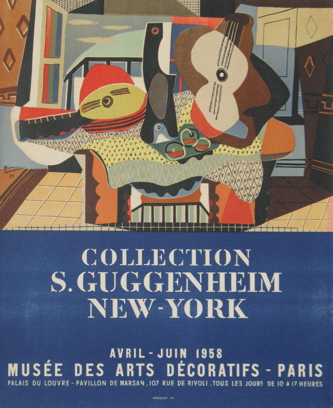 Als Motiv für das Ausstellungsplakat wurde das 1953 erworbene, großformatige Ölgemälde "Mandoline und Gitarre" des damals berühmtesten lebenden Künstlers des europäischen Kontinents gewählt: Pablo Picasso. Es war sicherlich kein Zufall, auf dem Ausstellungsplakat der Collection S. Guggenheim New York dem Publikum in Paris ein Hauptwerk Picassos zu zeigen.