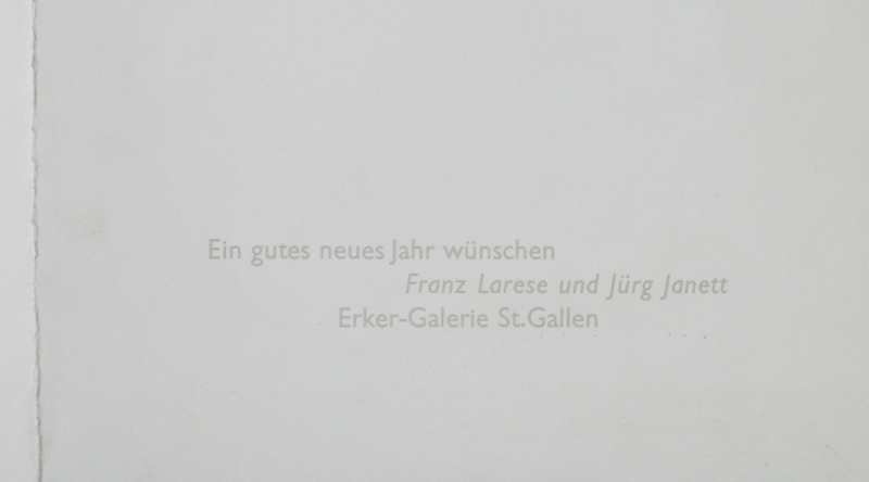 auf der Rückseite gedruckter Glückwunsch von Seiten der Erker-Galerie St. Gallen